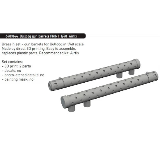 Brassin set - gun barrels for Bulldog in 1/48 scale. Made by direct 3D printing. Easy to assemble, replaces plastic parts. Recommended kit: Airfix